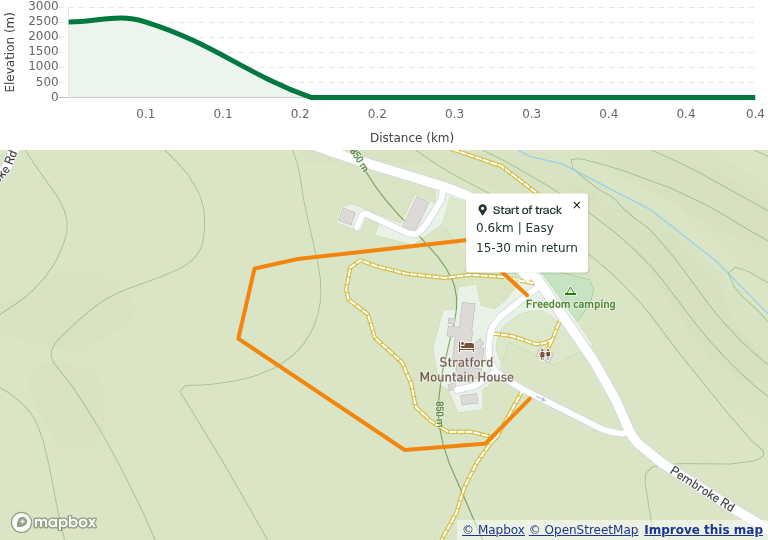 The track begins just above the Stratford Mountain House, 15 km along Pembroke Road. Turn off SH23 onto Pembroke Road at the northern end of Stratford.
